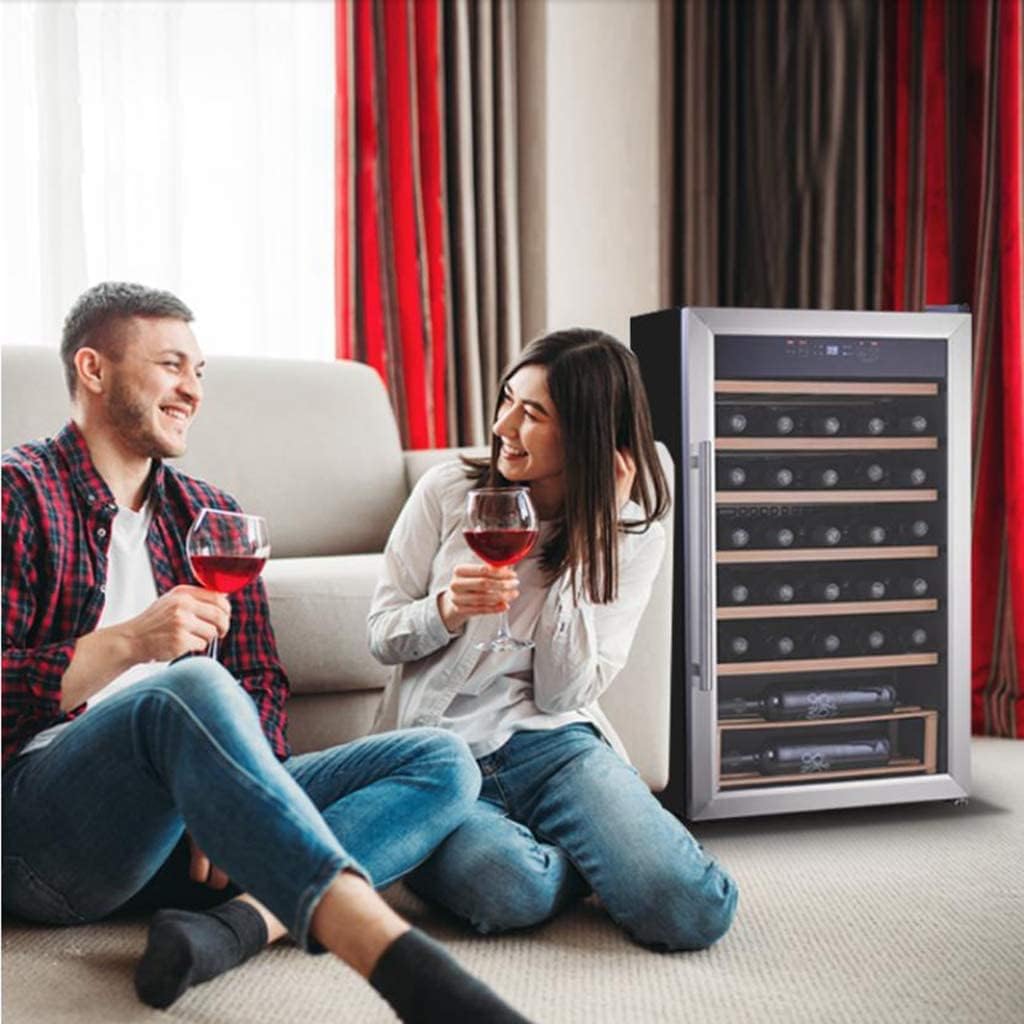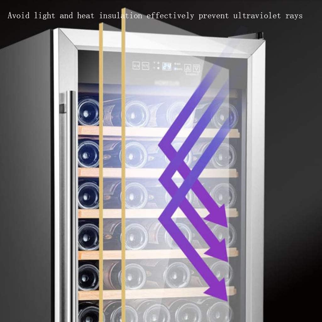 Product size: 495x565x848mm Net weight: 28.3kg Number of bottles: 51 bottles Power: 84W Internal temperature: 5-18C Cooling method: compressor air cooling Precise temperature control: use precision control temperature sensor to sense the change of outside temperature and automatically match the set storage temperature Opening at a large angle of 220 degrees: making access to wine easier and simpler LED cold light lighting: soft light, durable and energy-saving Stainless steel handle: simple design, comfortable operation Adjustable feet at the bottom of the cabinet: ensure stable placement even in uneven places Thickened sealing strip: thermal insulation performance, environmental protection and practicality