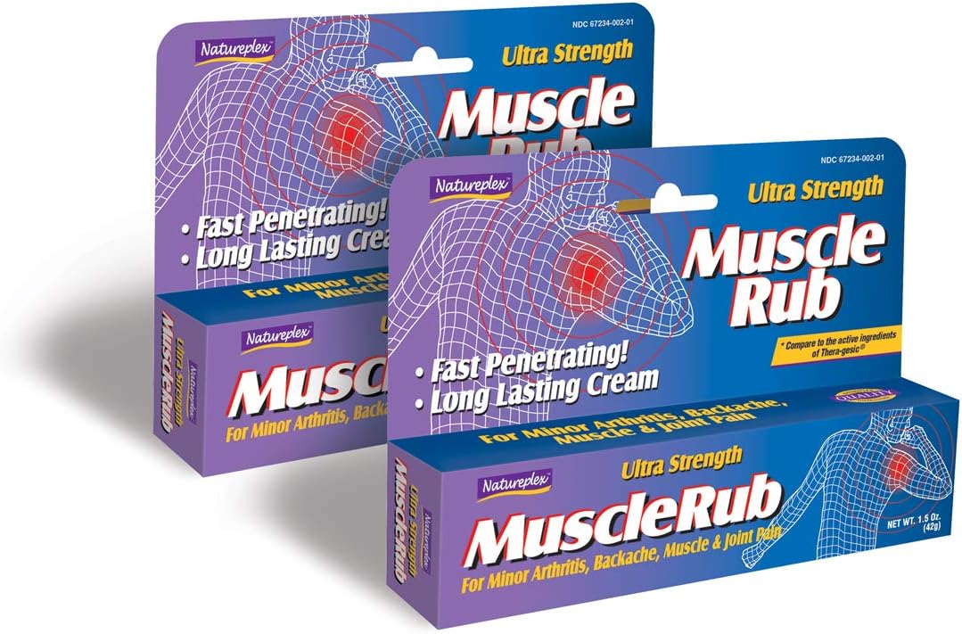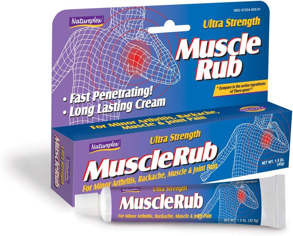 Ultra Strength Muscle Rub Natureplex Ultra Strength Muscle Rub is a topical pain reliever that is applied to the site of discomfort to provide temporary relief of minor aches and pains of muscles and joints. View More Information Redness, warmth, stinging, or burning on the application site may occur with the use of Ultra Strength Muscle Rub. If any of these effects persist or worsen, contact your doctor or pharmacist promptly. If your doctor has directed you to use this medication, remember that he or she has determined that the benefit to you is greater than the risk of side effects. Many people using this medication do not have serious side effects. Read the label carefully to make sure this is the right product for you. Before using Ultra Strength Muscle Rub, tell your doctor or pharmacist if you are allergic to menthol or methyl salicylate; or to aspirin or other salicylates (e.g., salsalate); or if you have any other allergies. Natureplex Ultra Strength Muscle Rub may contain inactive ingredients, which can cause allergic reactions or other problems. Talk to your pharmacist for more details.